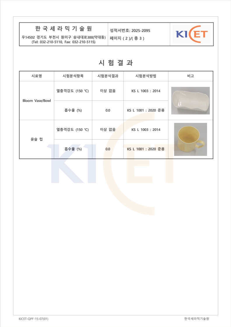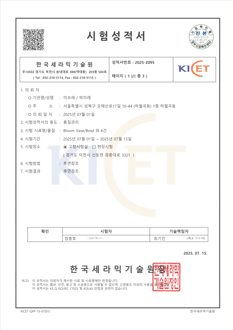 미브래 도자기는 한국세라믹기술원에서 시험 성적을 받은 안전한 도자기입니다 : )
